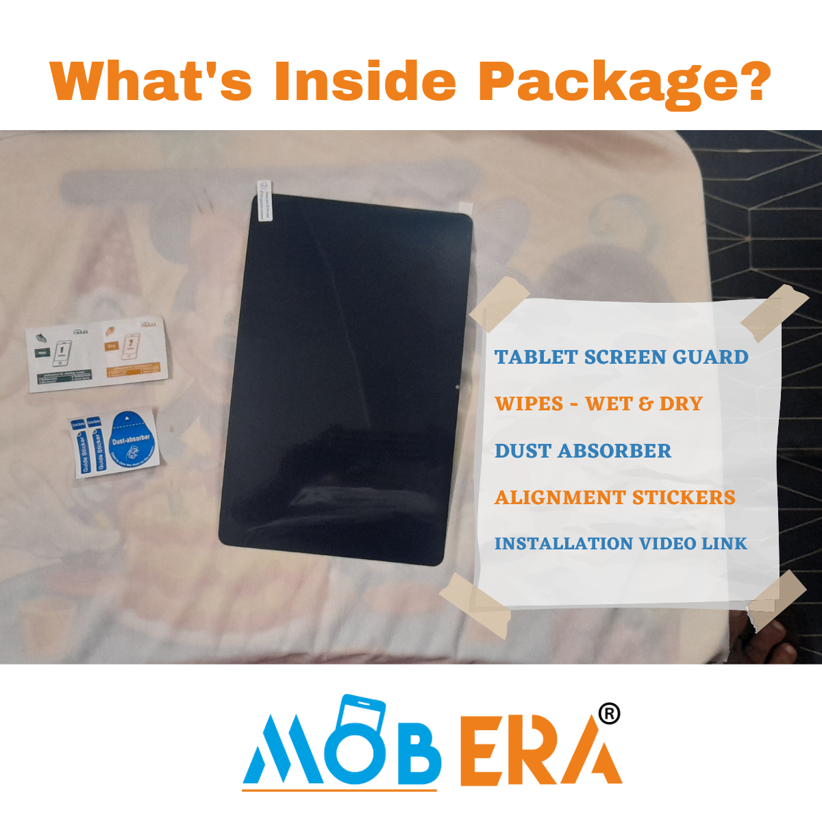 MobERA Safeguard your tablet device from scratches, drops, and small water spills with MobERA Glossy (HD) Finish Screen Protector Guard. Tailor-made for mobile devices, this screen protector is designed to fit perfectly with your device's size and design, including water drop notches, camera holes, buttons, fingerprint sensors, and speaker grills. Its fully flexible or unbreakable material is built with 9H hardness for maximum protection without adding bulk to your device.