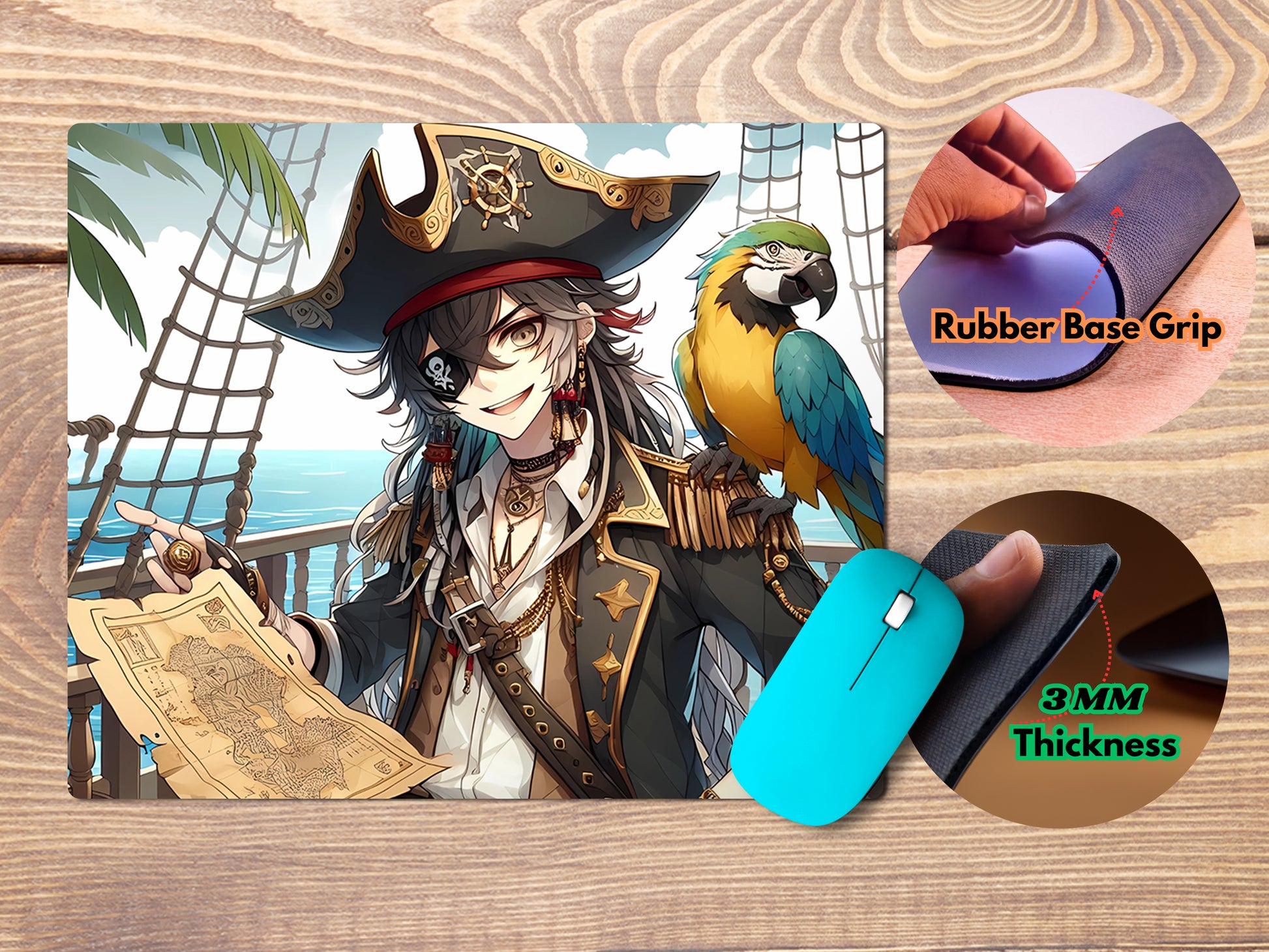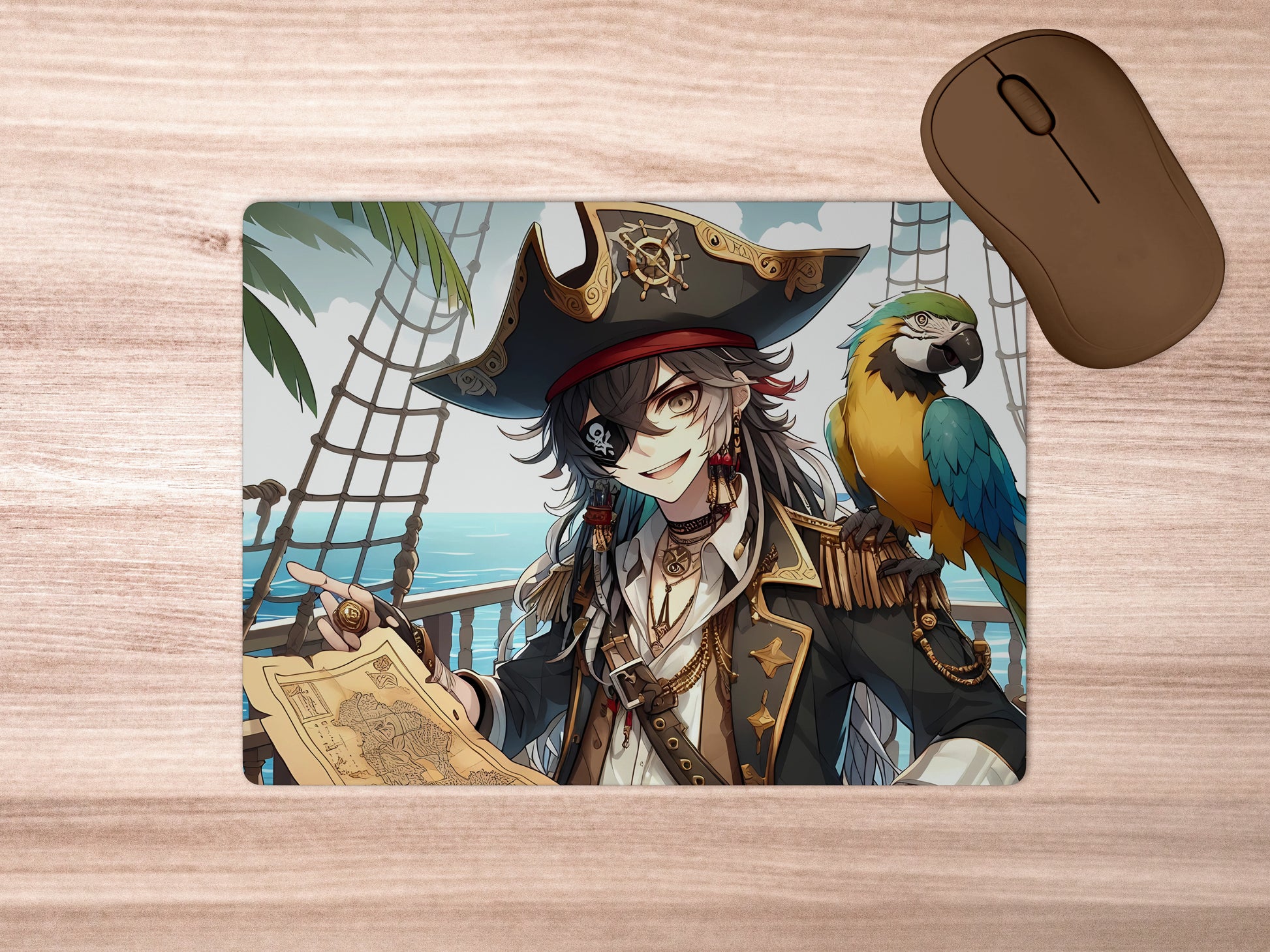 Pirate Captain with Parrot Anime Mouse Pad